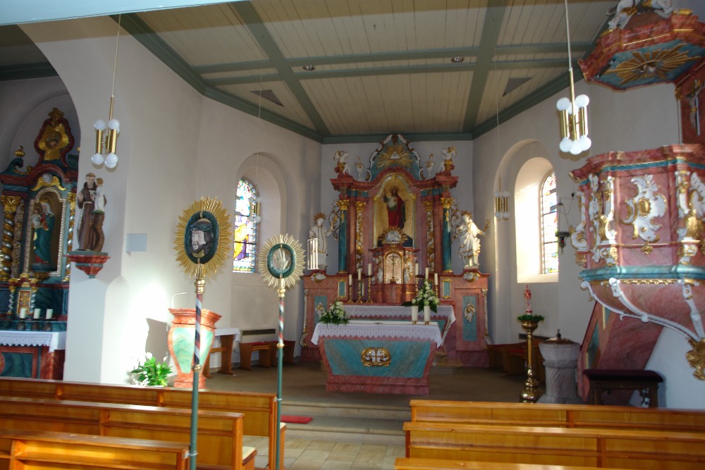 1651 Nach dem Dreißigjährigen Krieg wurde eine groß Glocke (Durchmesser von 0,70 m) angeschafft. Eine dreizeilige Inschrift in lateinischen Majuskeln, informierte über den damaligen Pfarrer und die Gemeindebeamten. Die Glocke war mit einem Medaillon , mit der Darstellung des Heiligen Pankratiuses (männlicher Heiliger mit Lilie) verziert